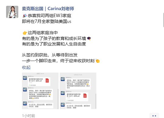 這兩個家庭背景不同,但此刻的狀態卻出奇一致——興奮、緊張和感慨交織在一起。 有位客戶在群里說的一句話讓我印象深刻:“說白了,就是工作一年,換來全家人的美國綠卡,真值。”