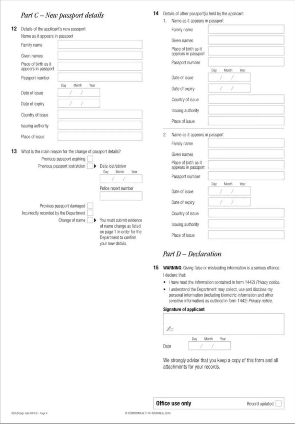 PartC:填寫新護照的基本信息,如果確實沒有其他護照情況,可以略過