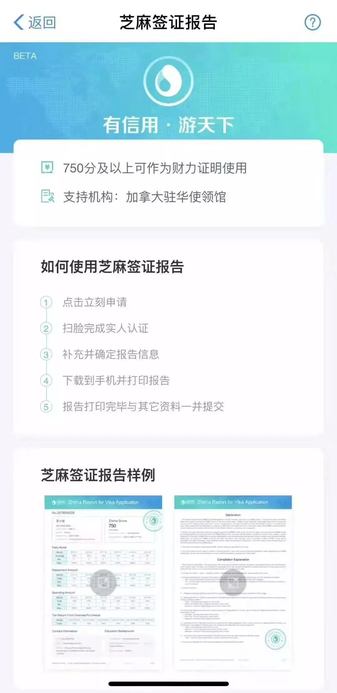 重磅消息!加拿大簽證申請可以采用芝麻信用報告,芝麻信用750分即可快速辦理!