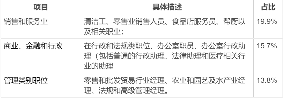 這三大行業大約占新增職位總數的50%,而預計職位增幅最低的行業是自然資源、農業及其相關行業。