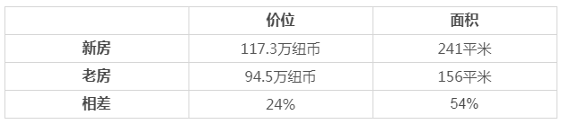除了新房價格更低,新房還比舊房大了38平米,在WaiOTaikiBay買新房可以說是很劃算了。不過當地2018年以來只有25套新房,房源供應并不大。換算成按平米的面積,新房每平米比舊房貴了15%。單平米的價格幾乎達到了8400紐幣。