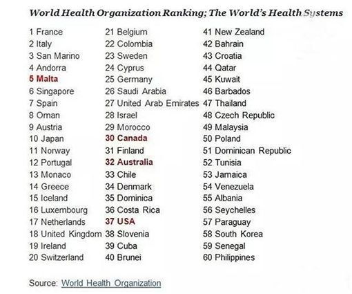在世界衛(wèi)生組織(WHO)發(fā)布的世界醫(yī)療體系排行榜中,馬耳他位列第五,排名超出很多大國(guó)。