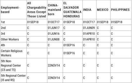 根據(jù)美國(guó)移民局20198月15日發(fā)布的2019年9月的簽證公告牌,EB-1倒退;EB-2停滯;EB-3倒退;EB-5前進(jìn)。EB-5表A排期前進(jìn)一周,表B前進(jìn)一周。