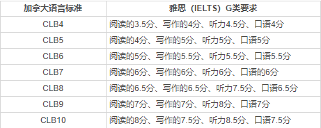 雅思是移民申請人選擇最多的一種語言成績,加拿大語言等級標準CLB最常見的七個等級與雅思的對照: