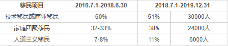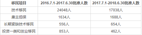 (1)51%的申請為技術移民或商業移民:這一類別2016年7月1日-2018年6月30日間比例為60%;