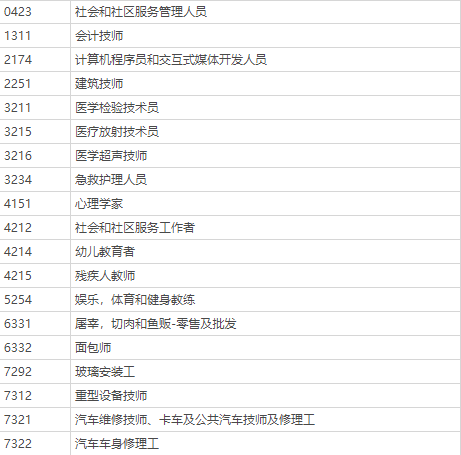一、最新的薩省職業列表