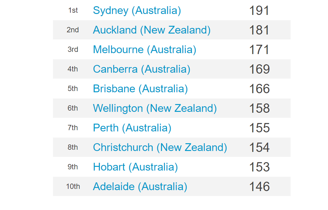 來這些城市就對了! 在Expatistan 《Cost of Living Index in Oceania》排名中,奧克蘭、惠靈頓、基督城分列第2、6、8位,可以說是全新西蘭生活成本最貴的城市。