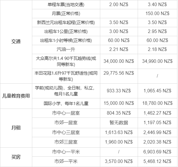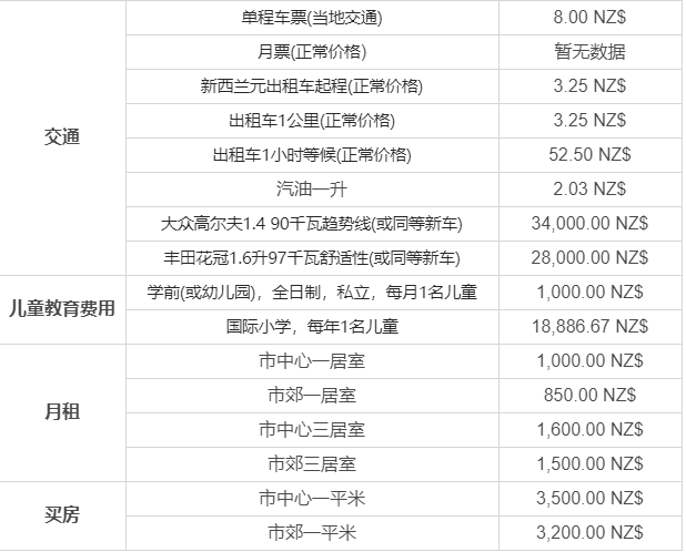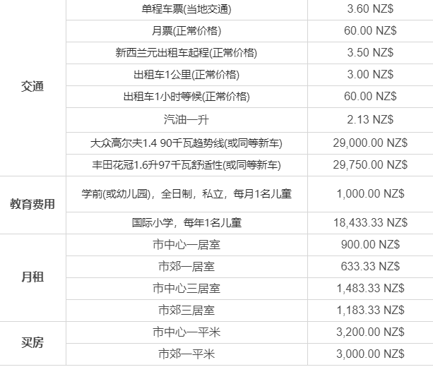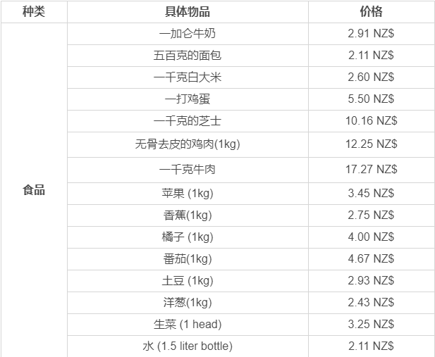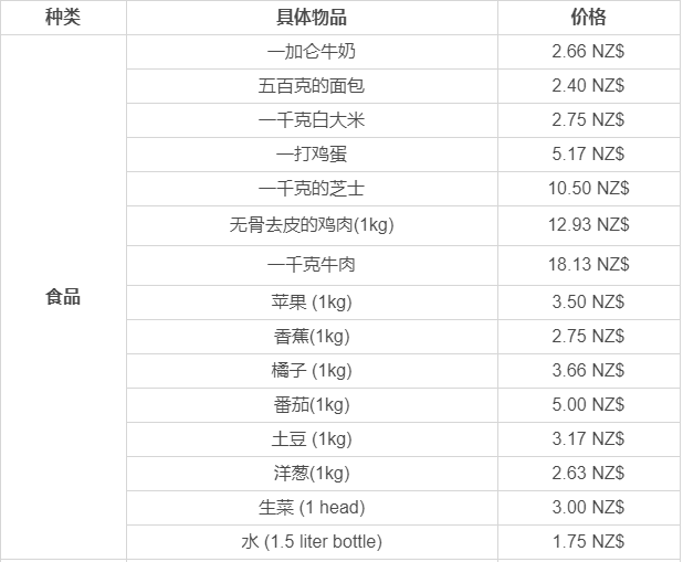 以下略新西蘭平均物價水平。