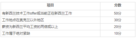 技術移民評分表主要包括五項評分標準:新西蘭技術雇傭、工作經驗、學歷、年齡和配偶加分。