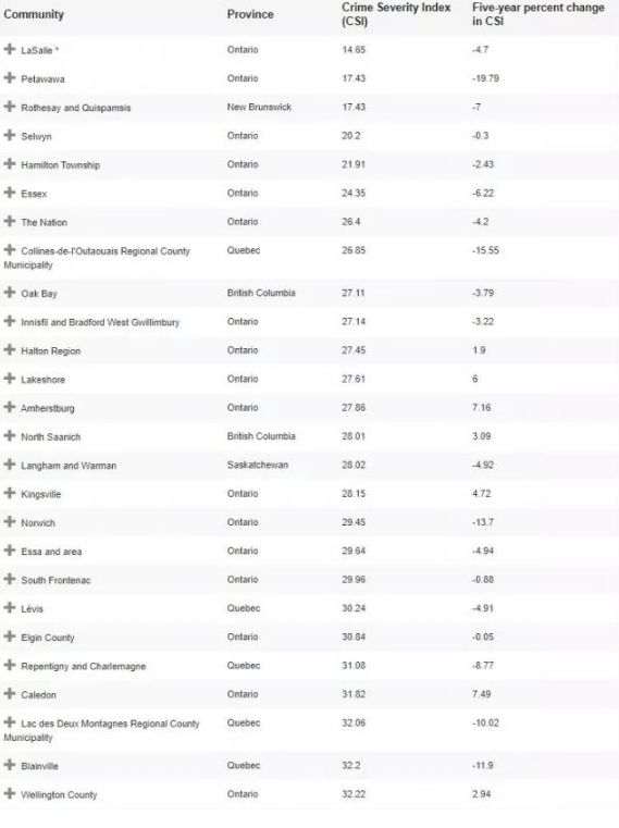 安大略省LaSalle與底特律河上的Fighting Island相鄰。根據(jù)加拿大統(tǒng)計(jì)局在7月份公布的犯罪率排名,LaSalle被列為加拿大最安全的居住地。 LaSalle距溫莎市中心約20分鐘車(chē)程,是法裔聚居地,人口約3萬(wàn)多人。之所以犯罪率低,是因?yàn)猷徖锓e極互助,各類(lèi)社區(qū)活動(dòng)頻繁。還有一個(gè)因素是,很多人會(huì)去溫莎市中心閑逛,而不會(huì)來(lái)LaSalle,這只是一個(gè)相對(duì)收入較高的住宅區(qū)。 加拿大統(tǒng)計(jì)局的發(fā)言人Fabrice Mosseray表示,LaSalle擁有全國(guó)最低的犯罪嚴(yán)重度指數(shù)15,而全國(guó)平均指數(shù)為75。此外,華裔人口聚集的安省約克區(qū)排在中上的位置。