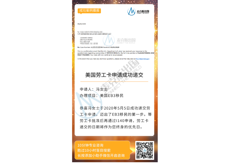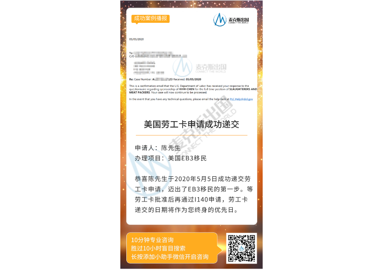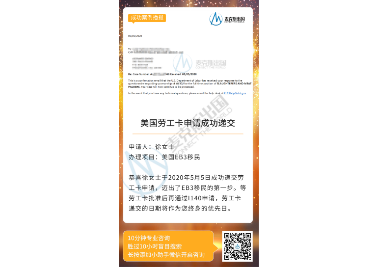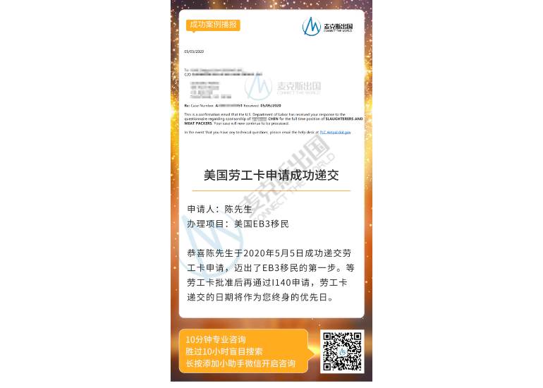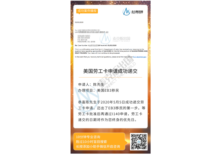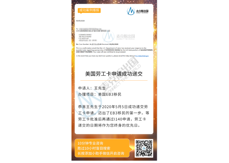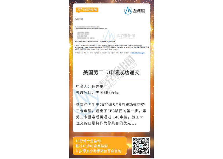 恭喜我司25位客戶成功遞交勞工卡申請(qǐng),邁出了EB3移民的第一步!