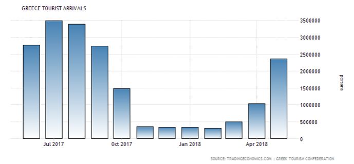 人力資源組織OAED發布的數據也顯示,5月,登記的失業人數比上月減少5.7萬人,每新增10個就業有7個與旅游有關。零售業也希望游客增長能彌補國內居民可支配收入下降帶來的損失,據估計游客涌入將使今年零售業增長5%左右。