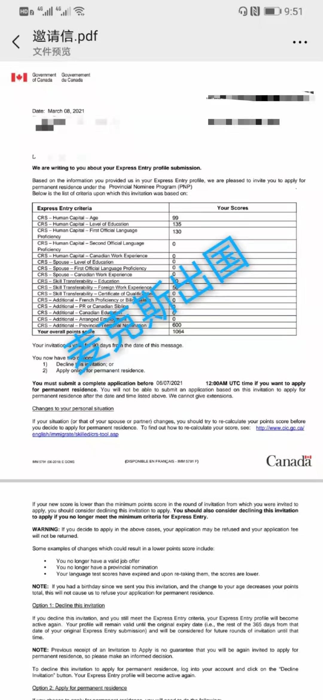今年3月8日,Z女士以總分1064的高分終于獲得了安省的省提名,鎖定了移民加拿大的機會。