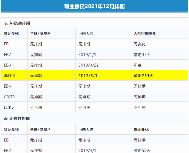 二、2021年12月美國移民排期情況
