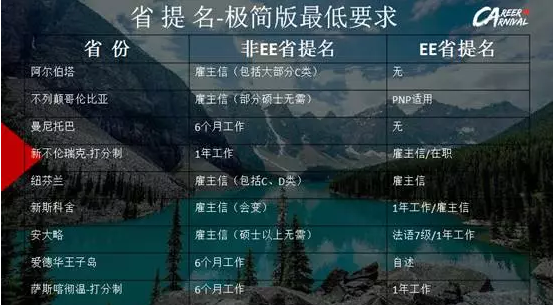 加拿大各個省為了本身經濟的發展,于是制定了有利于本身經濟發展的移民政策,就是我們通常所說的省提名(PNP)移民。各個省的省提名不完全相同,留加的同學們也得根據適合自己的省提名提前選擇。